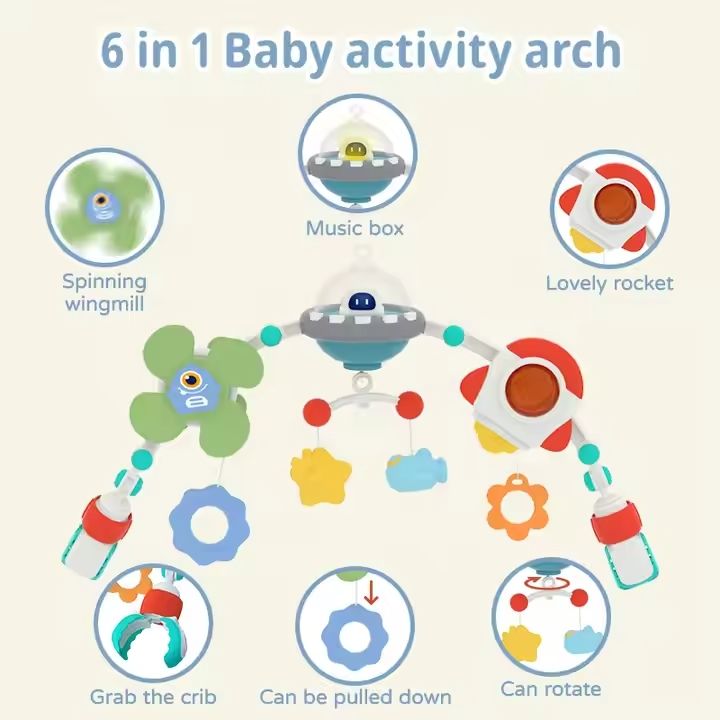 The Babies-Up Musical Arch Toy Mobile is a must-have accessory for growing minds-combining fun, music, and developmental benefits in one portable design.