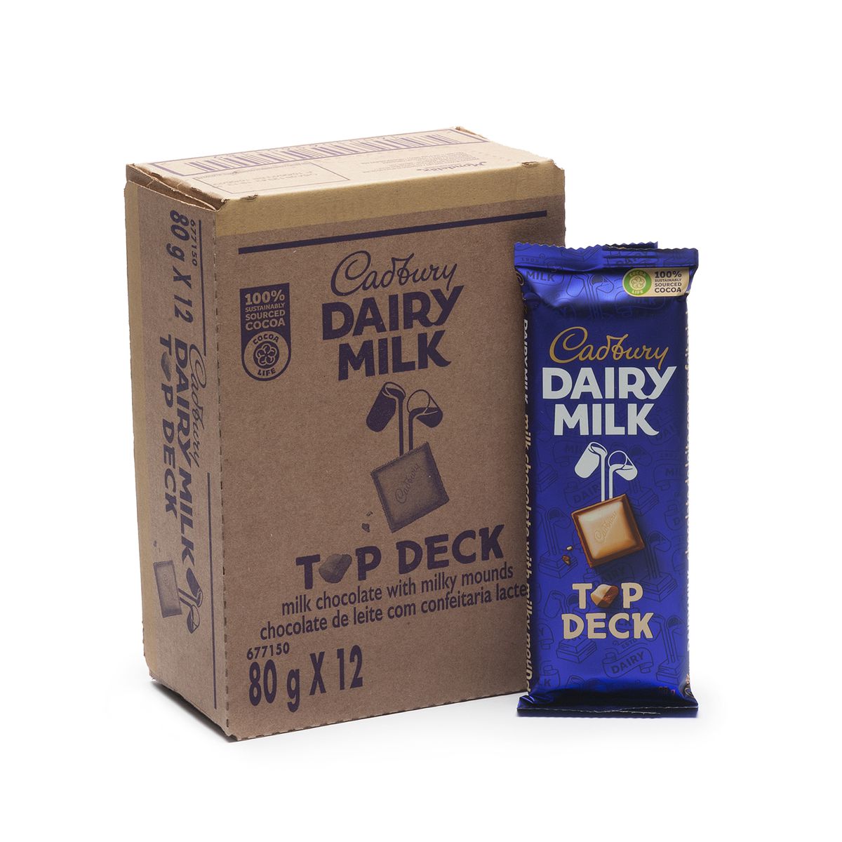 Cadbury Dairy Milk Top Deck Chocolate Bars - 12 x 80g Bars