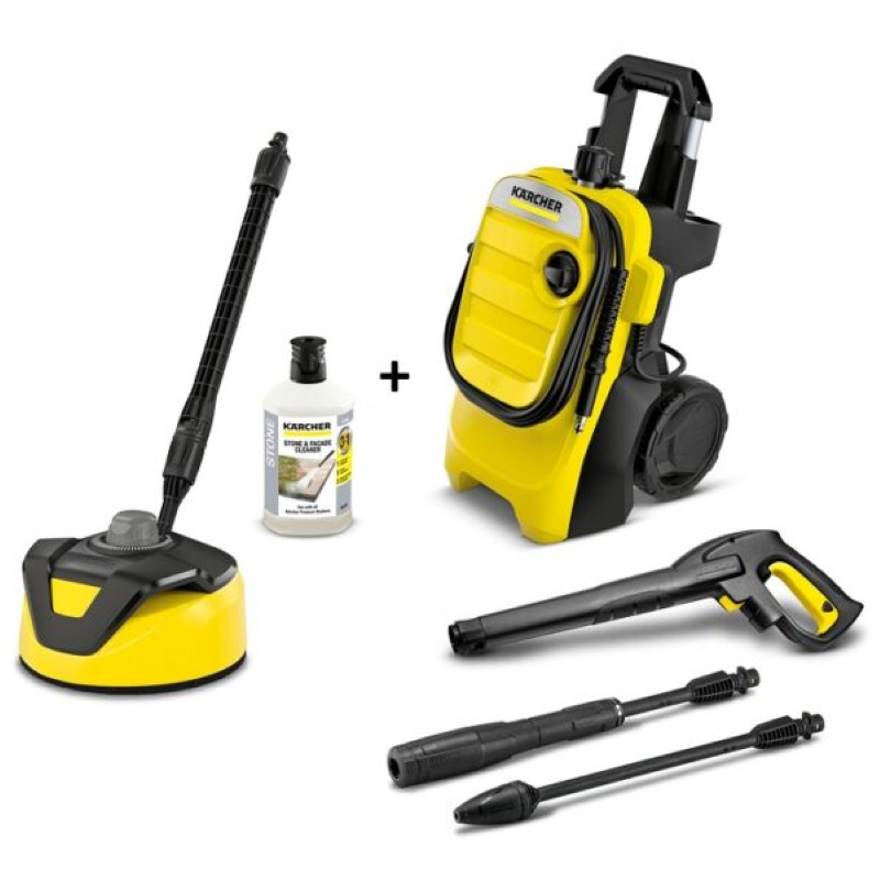 The Karcher Pressure Washer K 7 Compact Home cleans stubborn dirt from surfaces at up to 60 m² per hour. Proving its credentials in terms of both ease of use and performance. Package includes T 7 surface cleaner & 1 litre stone & facade cleaner.