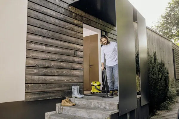 The Kärcher WD 2 Plus Vacuum Cleaner & Bags impresses with its compact design and is super-powerful and energy-efficient – and with power consumption of only 1000 W. The machine achieves top cleaning results for dry, wet, fine and coarse dirt. The wet and dry vacuum cleaner has a robust and impact-resistant 12 litre plastic container, 4 metre cable, as well as 1.8 metre long suction hose with straight handle, Clips floor nozzle and fleece filter bag. The single-piece cartridge filter allows dry and wet dirt to be vacuumed without filter replacement and can be installed on the filter basket by turning clockwise. The vacuum cleaner also has a practical blower function, which can be used in places where vacuuming is difficult. The storage area on the machine head is used for the safe storage of tool and small parts. Tubes and floor nozzles can also be quickly and conveniently parked in the park position on the bumper. On top of this, the machine boasts space-saving storage, simple accessory storage, the “Pull & Push” locking system and an ergonomically shaped carrying handle for comfortable transport.