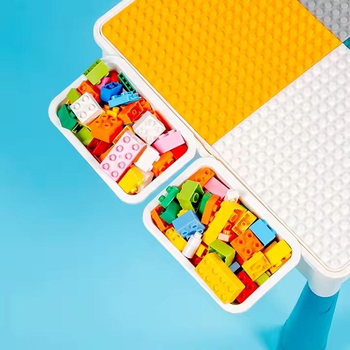 The large tabletop is compatible with major building blocks and easily converts from a construction surface to a smooth table for drawing, eating, or other activities. The included 350 colorful building blocks spark endless imaginative play, while the built-in storage compartments help keep everything neat and organized.