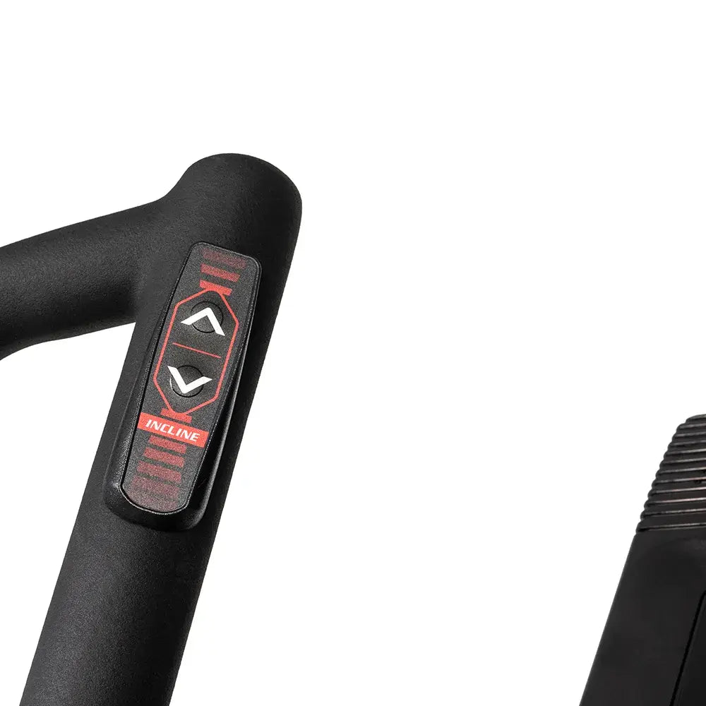 The ramp angle is fully adjustable from 0 to 20 levels of incline, allowing you to individually target and work all major lower body muscle groups, as well as handlebars for upper body exercise for a total body workout. Stationary handlebars with built-in pulse sensors for monitoring your heart rate. A heart rate chest strap is also included for hands-free pulse monitoring and heart rate interactive programs.