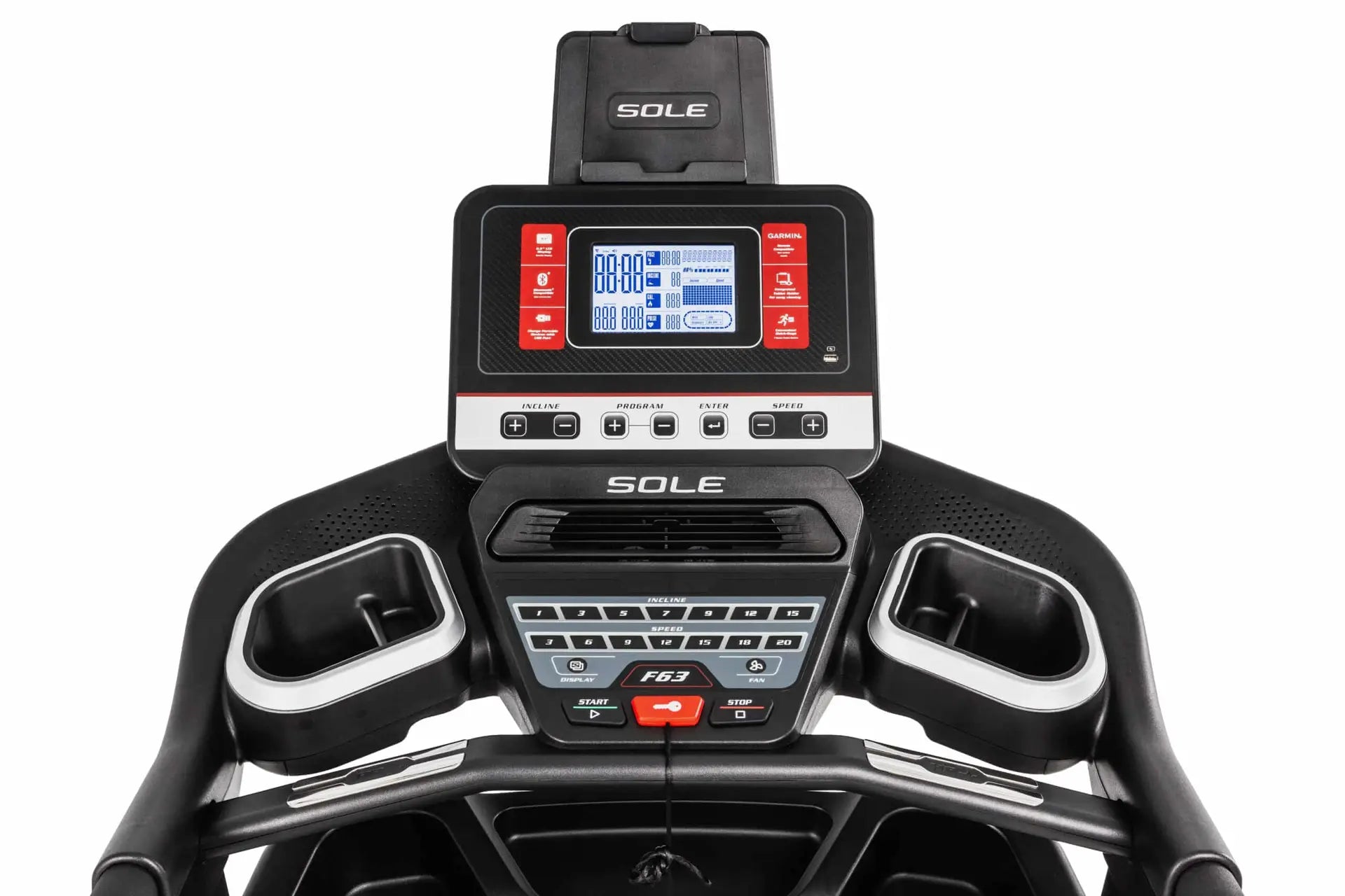For added convenience, the Sole Fitness F63 Home Use Treadmill 3 Chp includes a variety of practical features designed to enhance your workout experience. The treadmill’s built-in heart rate monitoring system, via hand sensors or a compatible chest strap, helps you stay within your target heart rate zone. Additionally, the F63 features a spacious tablet holder and convenient water bottle holders to keep you hydrated and entertained.