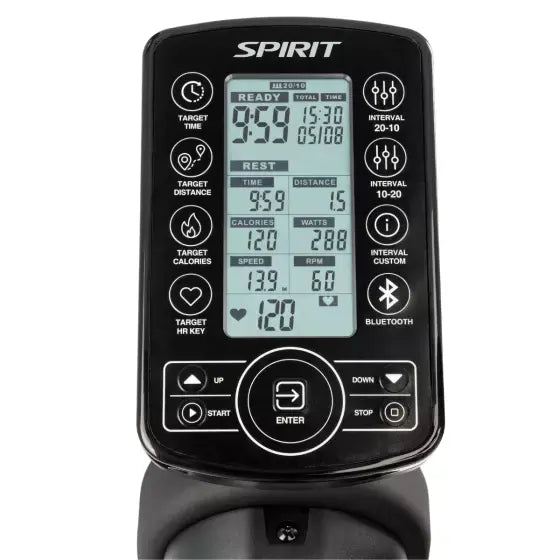 The Spirit AB900 is equipped with an intuitive console that provides real-time feedback on essential metrics such as time, distance, calories burned, and resistance level. The display is easy to read and navigate, offering a range of pre-set programs and customizable options to suit your fitness goals. The bike also features Bluetooth connectivity, allowing you to sync with fitness apps and track your performance data over time.