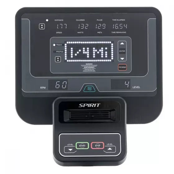 The Spirit CU800 Commercial Upright Bike includes a state-of-the-art console that offers real-time feedback on essential workout metrics. The large, high-resolution display tracks time, distance, speed, calories burned, and resistance level, allowing users to monitor their performance with ease. The console is equipped with various pre-set programs and customizable options to suit different fitness goals, from endurance training to interval workouts. Additionally, Bluetooth connectivity enables seamless integration with fitness apps and tracking devices, enhancing the workout experience with interactive features and progress tracking.