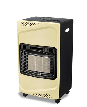 3 panel – ceramic tiles. Auto ignition. 3 heat settings. Uses 9kg gas cylinder.